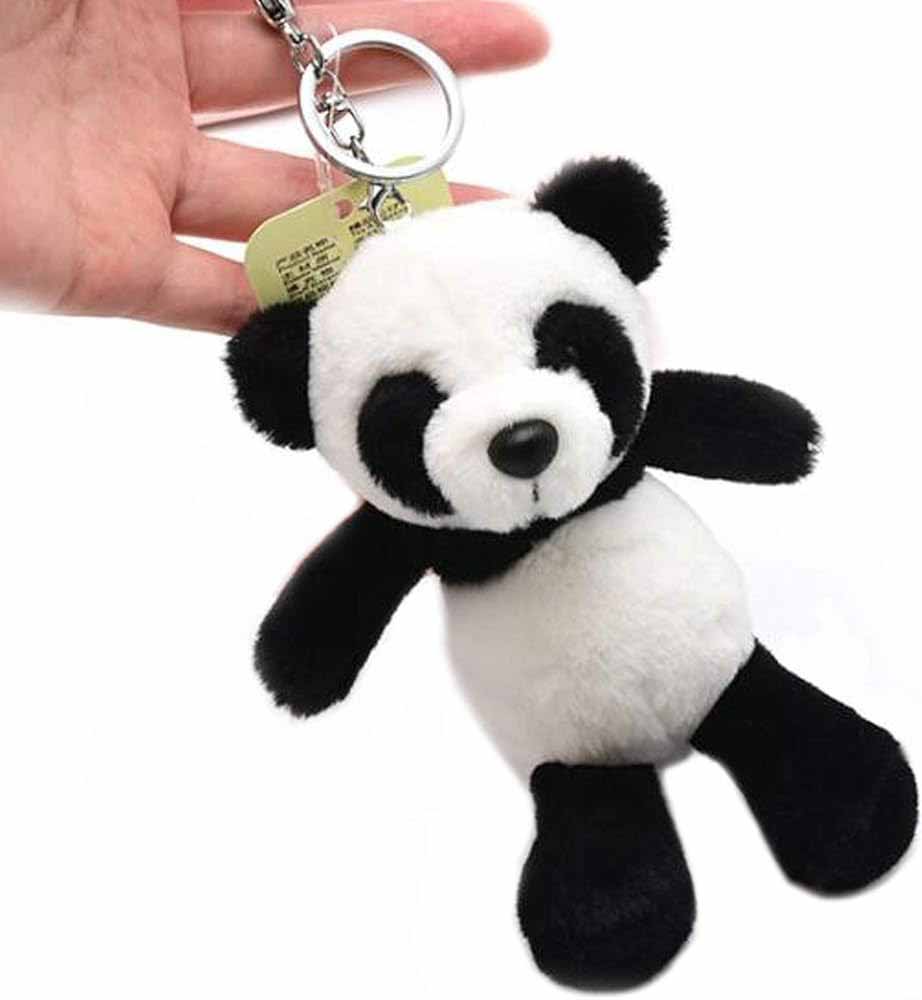 Mini Panda Plush Keychain with Classic Black-White Design