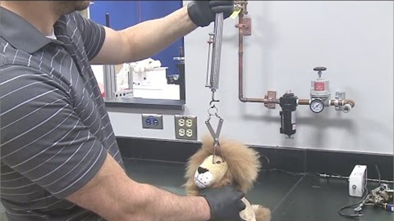 CE testing evaluates plush toys by simulating realistic and foreseeable use, including pulling, biting, squeezing, and exposure to heat or flame. Mechanical testing focuses on whether the toy can break, tear, or release parts that pose choking or injury risks, especially for toys intended for younger children.
