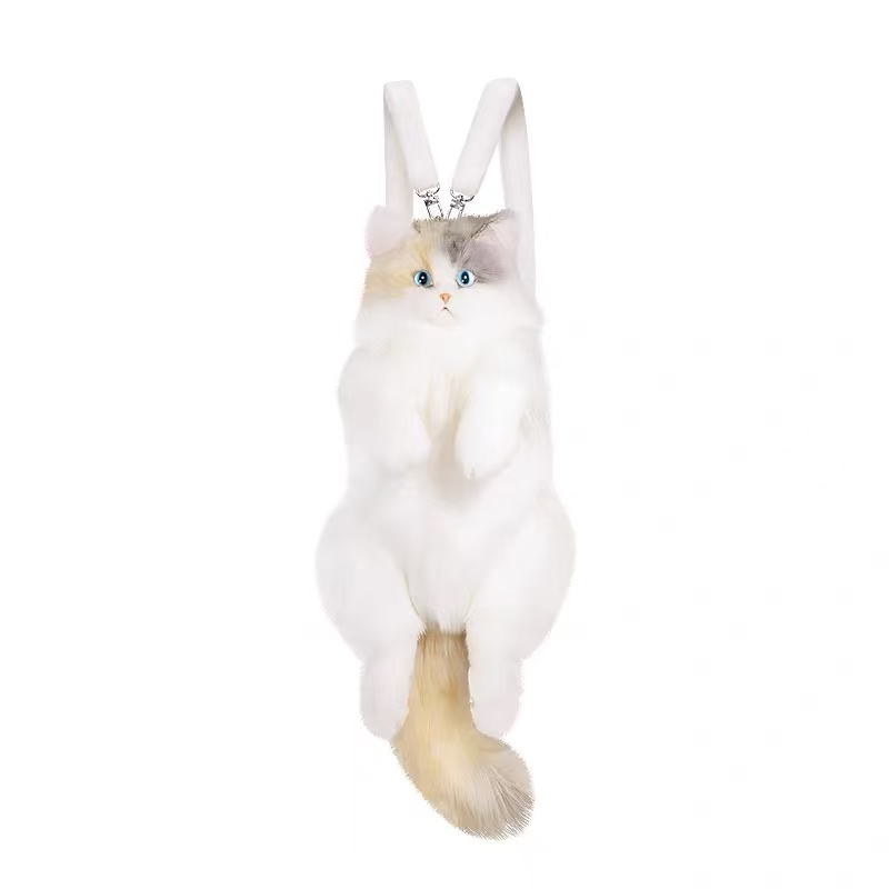 Charming cat-shaped backpack with embroidered facial details and soft filling.