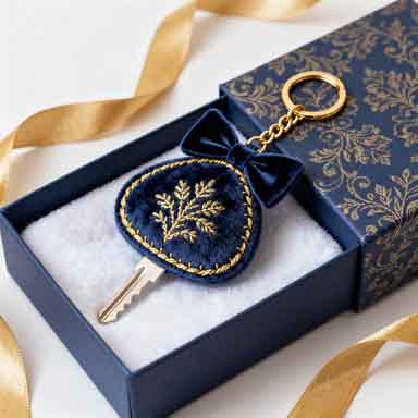 High-end plush keychains with fine stitching, upscale fabrics, and elegant packaging for premium brands.