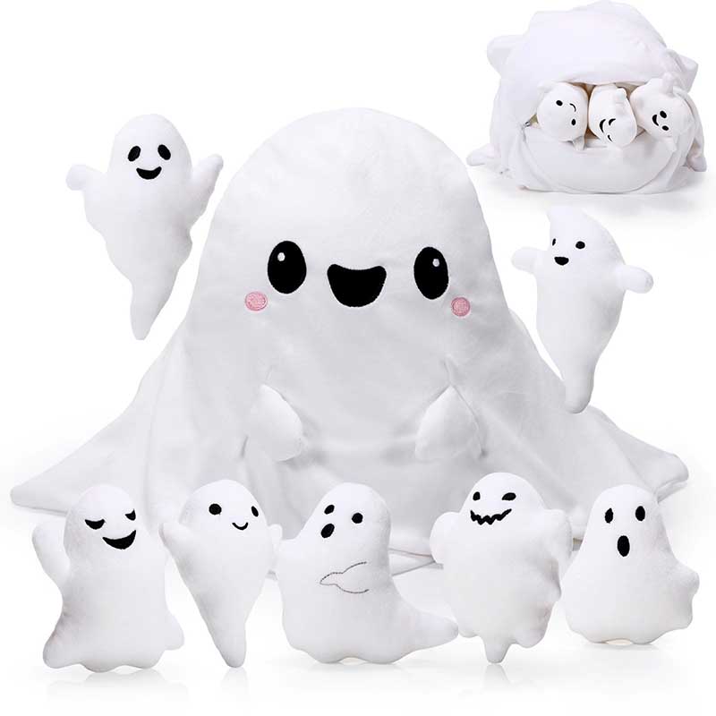 Ghost plush toys sell fast because they can be spooky and cute at the same time. For decoration, the key is keeping the expression friendly—soft eyes, small mouth, and minimal aggressive details—so it fits family homes and kid-friendly retail. The ghost silhouette also photographs well, which supports social sharing and seasonal décor content.