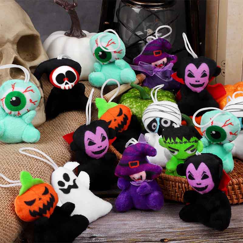 Mini Halloween plush toys are ideal for accent décor and impulse sales. Their small footprint allows placement on desks, shelves, entry tables, and retail counters. Despite their size, they must still clearly communicate Halloween identity through shape or color.