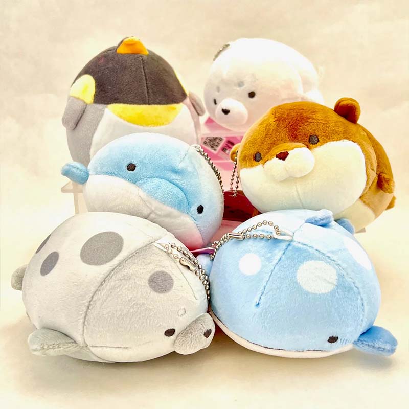 Animal features are reduced to the bare minimum. Faces often consist of tiny embroidered eyes and a dot or short line mouth. Limbs, ears, or tails are either extremely small or omitted entirely, allowing the plush to maintain a smooth, rounded form. Fabrics are typically ultra-short-pile plush or spandex-blend materials that enhance the squishy hand feel.