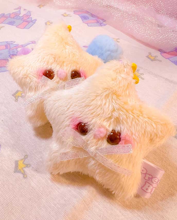 Kawaii star plush toys transform a geometric shape into something emotionally friendly. Instead of sharp points, the star’s edges are rounded and padded, creating a smooth outline that feels safe and huggable. This rounded geometry is essential—sharp-looking angles break the kawaii aesthetic and reduce perceived softness.