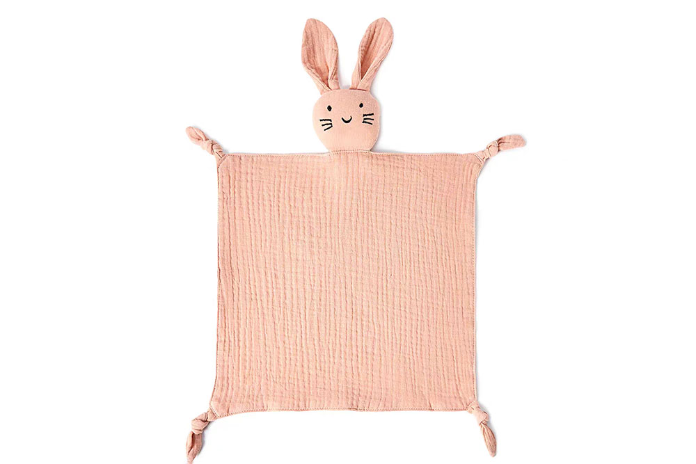 Organic cotton lovey-style plush toys combine a small plush head with a lightweight blanket body. This hybrid design is widely recognized for its calming effect on infants, especially during sleep transitions or unfamiliar environments.
