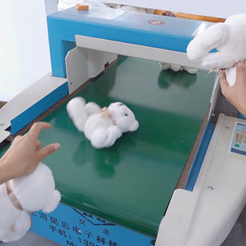 After QC approval, every plush toy must pass needle detection—a mandatory safety process that ensures no metal fragments remain from broken needles during sewing. Toys run through conveyor-type needle detectors calibrated to detect metal fragments as small as 1.0 mm.