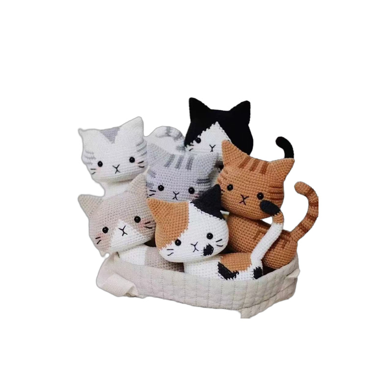 Crochet-style plush toys featuring handcrafted aesthetics and unique textures.