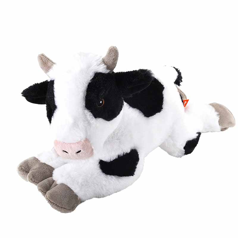 Cow plush toys are one of the most recognizable farm animal designs. The black-and-white pattern instantly signals “farm” and feels familiar across cultures.