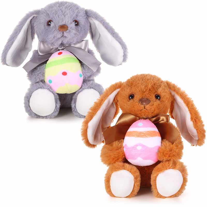 The egg should be plush and securely attached to the bunny’s arms. Color coordination between the bunny and egg enhances visual harmony. The bunny’s posture should feel natural and balanced.