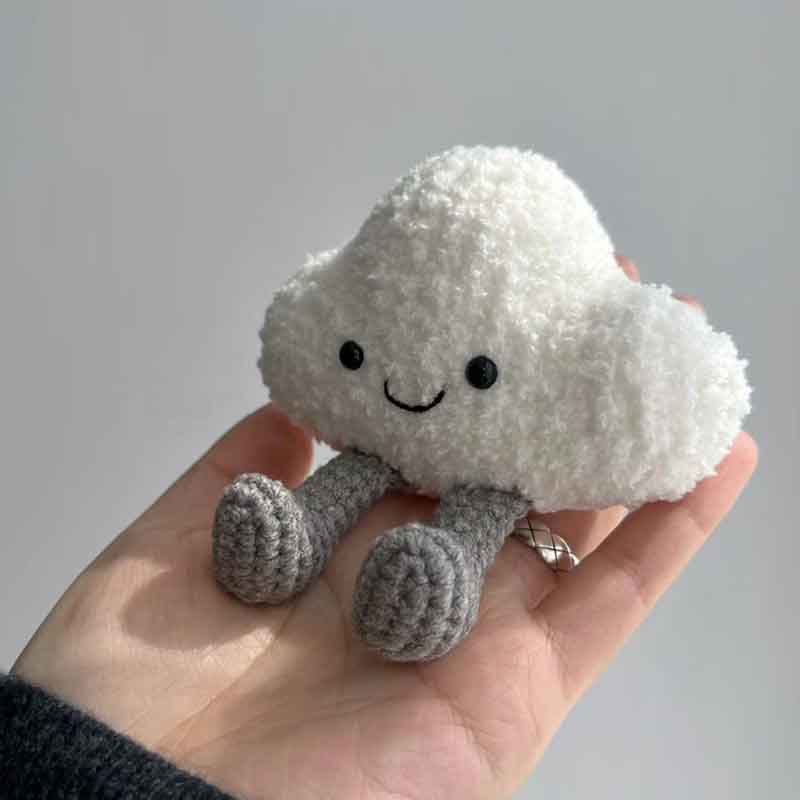 Fluffy knit thread enhances surface softness without adding weight. The internal filling should remain light and evenly distributed to preserve the cloud’s rounded form. Moms often prefer this type of plush for quiet time, reading corners, or nap routines.