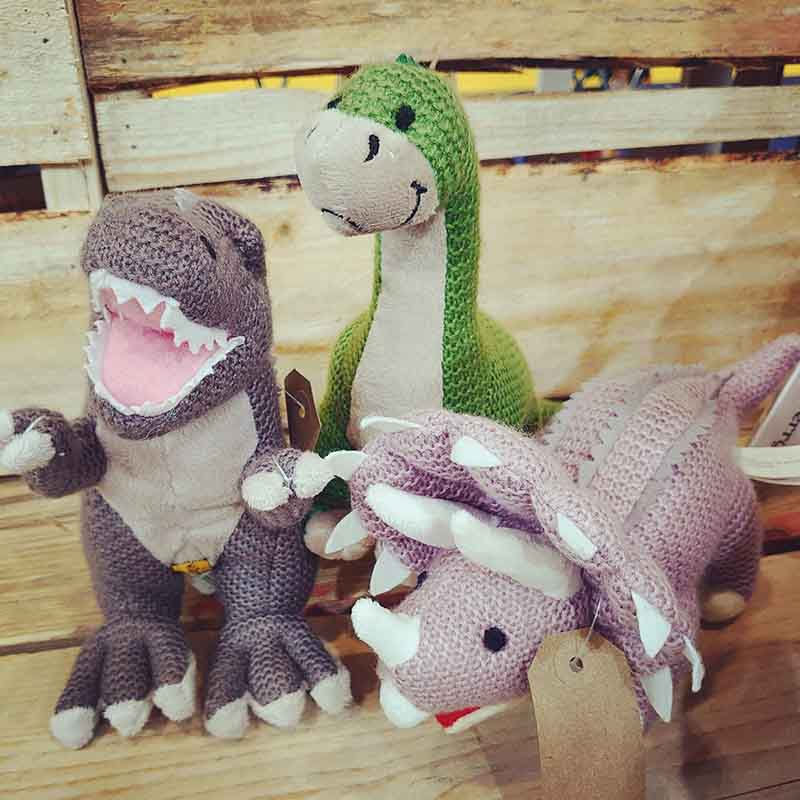 Knitted dinosaur plush toys offer a playful theme without aggressive styling. The knit texture softens the dinosaur image, making it suitable even for younger children.