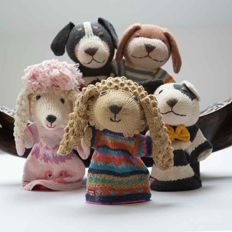 Knitted dog plush toys made with slightly chunky yarn convey warmth and friendliness. The thicker yarn gives a handcrafted appearance that many moms associate with care and effort.